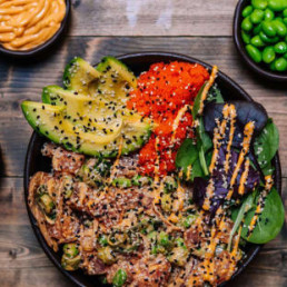 I had the pleasure of trying the Poké SAUMON Avocat and was blown away by the freshness and flavors of the ingredients. The combination of salmon, avocado, cucumber, scallions, edamame, Sriracha mayo sauce, and masago created a delightful harmony of tastes that left me craving for more.